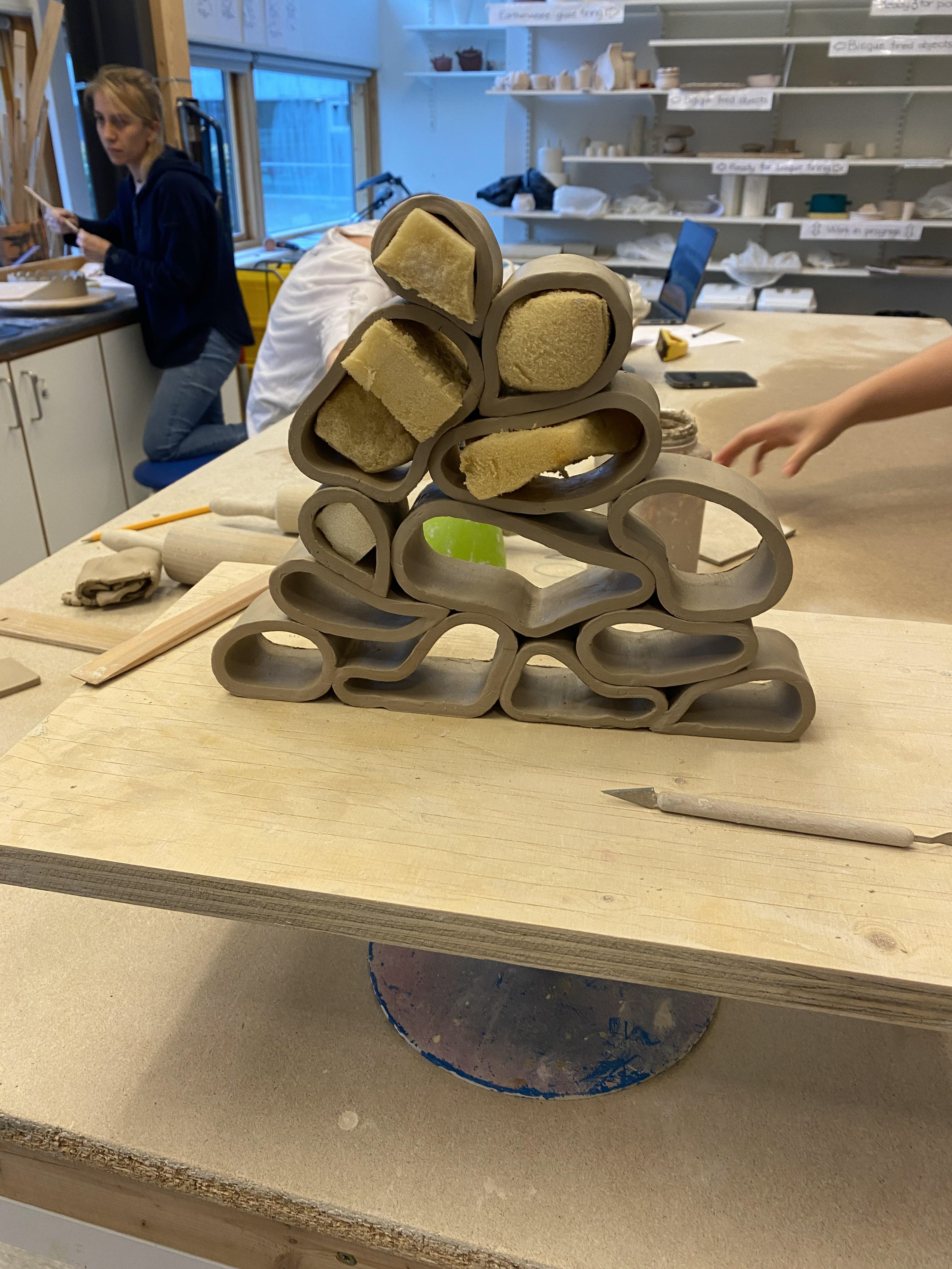 For this project, I initially studied the behaviors and patterns of ants and examined the properties of pine needles to see if they could inspire a design. While the pine needles didn’t lead to a meaningful outcome, I became fascinated by the intricate chambers ants create underground. Wanting to respect nature’s boundaries, I chose not to disturb them, but their patterns inspired me to craft a ceramic piece echoing their nests.
