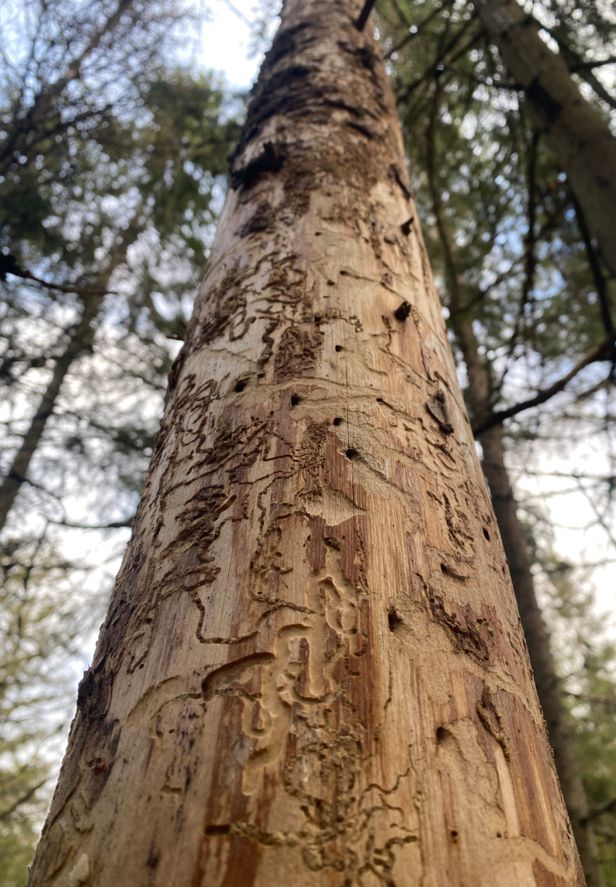 I became captivated by the intricate traces left by creatures like bark beetles and started questioning the traces humans leave behind. Unlike the delicate, purposeful paths of forest creatures, our impact is often overwhelming and disruptive. The next question that arose was: How can we, as humans, create traces as wondrous and delicate as those of small forest creatures? And, what kind of mark do we want to leave on this earth? To explore this, I examined maps as human “fingerprints” on the landscape and merged these ideas into a practice of experimental mark-making