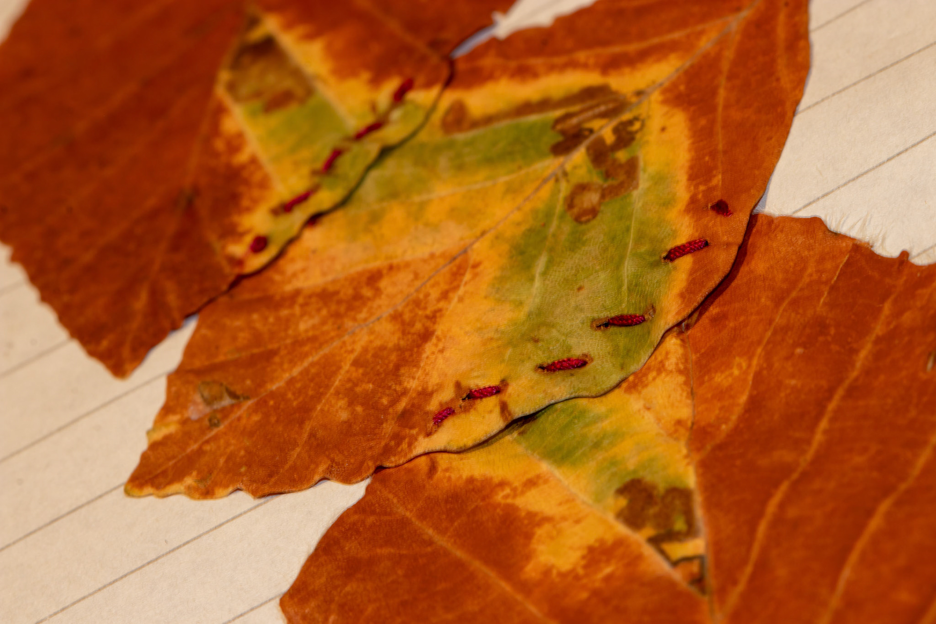 For a four-week project in my Master's Design + Change on Sustainability and Artistic Articulation, I turned to nature, looking closely at shapes, textures, colors, and patterns in my environment. A tiny trail on a leaf created by a small creature reawakened my sense of connection, also a theme central to my previous project. I began experimenting with clay, hand sewing, and blending natural forms with digital techniques. It became an intuitive and tangible process.